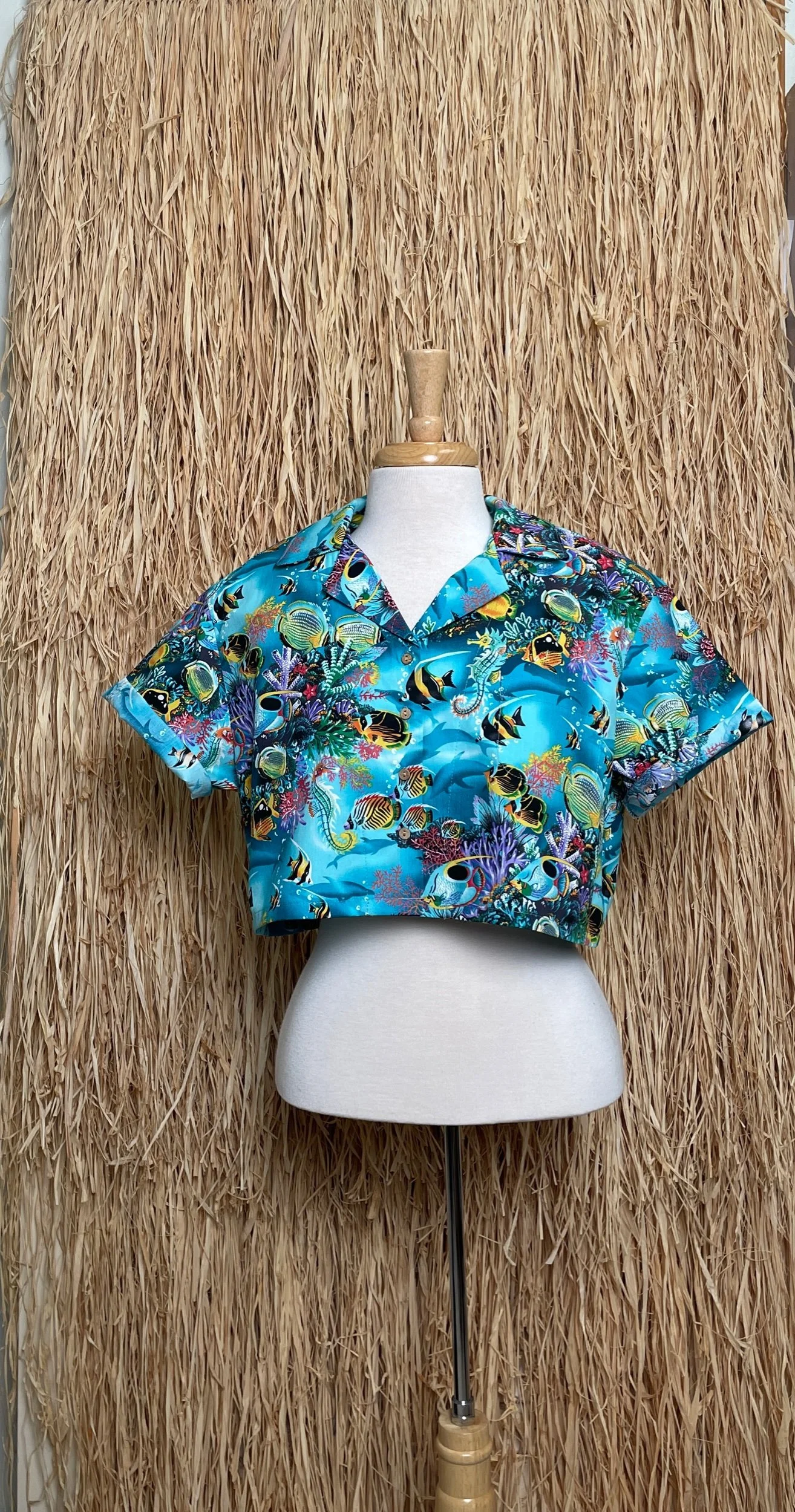 Hand knotted coconut buttons.